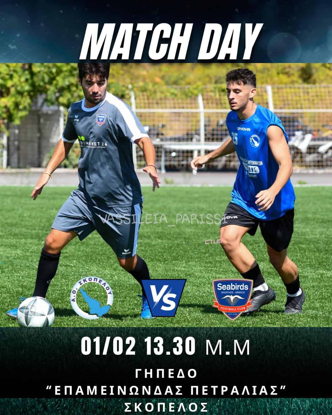 Ραντεβού στο γήπεδο Σκοπέλου δίνει η ομάδα του νησιού την Κυριακή στις 13:30, για τον εντός έδρας αγώνα απέναντι στα Seabirds Σκιάθου.