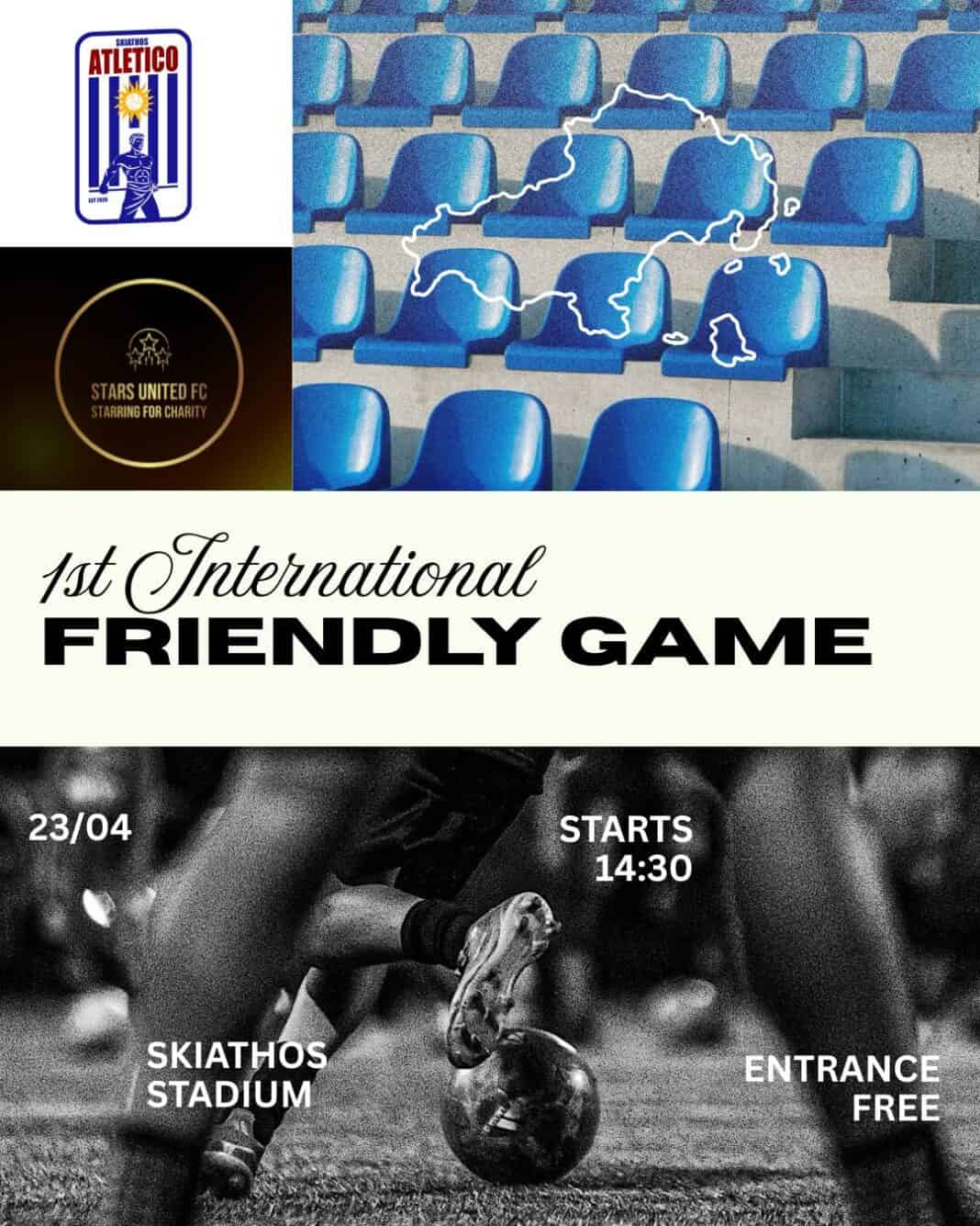 Η Skiathos Atletico διοργανώνει το πρώτο της διεθνές φιλικό παιχνίδι, υποδεχόμενη τη Stars Utd FC από την Αγγλία στη Σκιάθο.