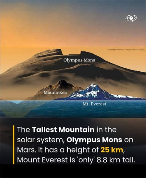 Με ύψος περίπου 24 χιλιόμετρα, είναι σχεδόν τριπλάσιο από το Έβερεστ