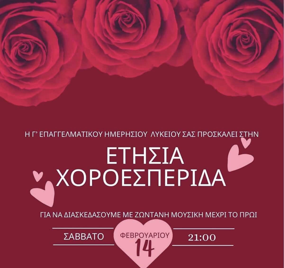 Σε νέα τοποθεσία θα πραγματοποιηθεί η Ετήσια Χοροεσπερίδα της Γ’ Τάξης του Επαγγελματικού Ημερησίου Λυκείου Σκιάθου, που είναι προγραμματισμένη για το Σάββατο 14 Φεβρουαρίου στις 21:00.