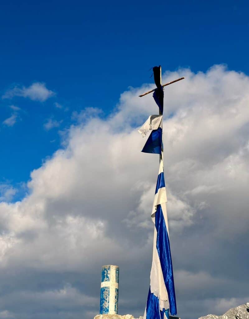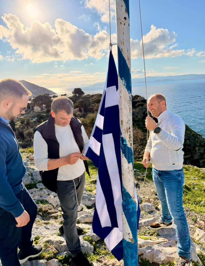 Αντικατάσταση της φθαρμένης ελληνικής σημαίας πραγματοποιήθηκε στο Κάστρο της Σκιάθου, σε μια λιτή αλλά ιδιαίτερα συμβολική κίνηση μνήμης και τιμής προς τους τρεις πεσόντες αξιωματικούς της κρίσης των Ιμίων.
