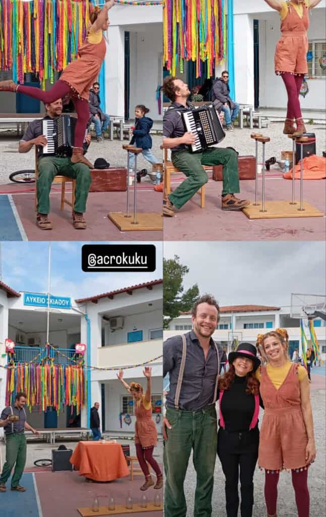 Στη συνέχεια, η σκηνή ζωντάνεψε με μια εντυπωσιακή παράσταση γεμάτη ακροβατικά, χιούμορ, ρυθμό και εκπλήξεις, προσφέροντας στιγμές διασκέδασης και συγκίνησης σε μικρούς και μεγάλους. Το κοινό χειροκρότησε θερμά τους συντελεστές, ενώ η εκδήλωση ολοκληρώθηκε σε γιορτινή ατμόσφαιρα με μουσική και χορό.