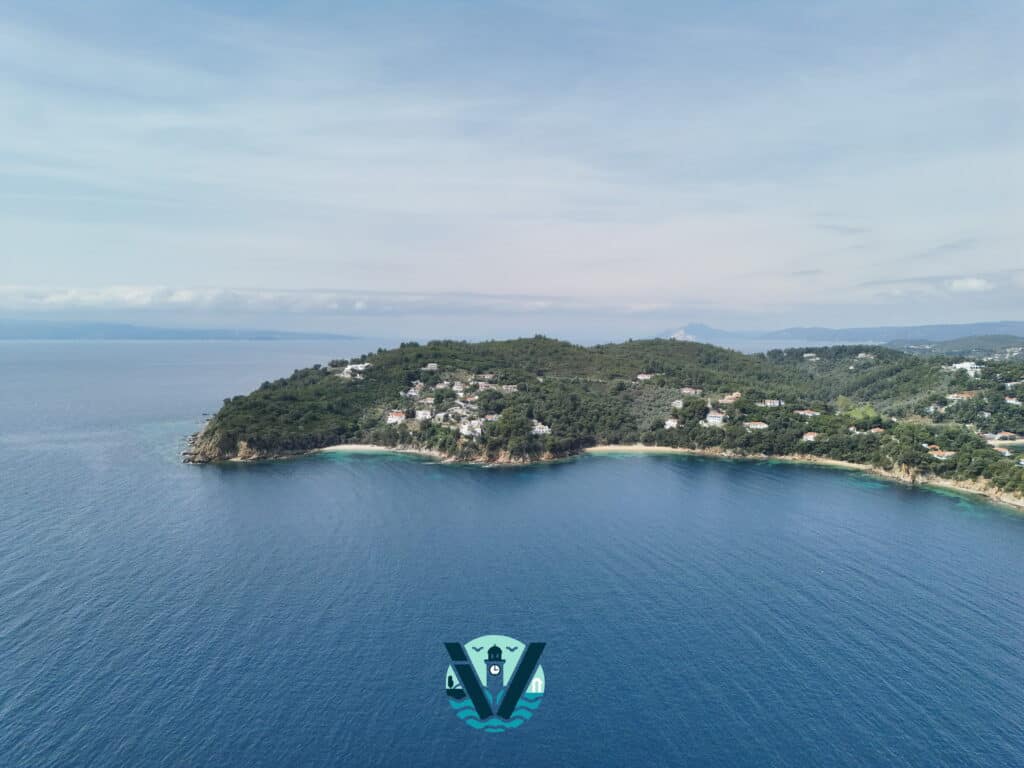 Η ομορφιά του νησιού μας ξεδιπλώνεται αλλιώς όταν την κοιτάς από τον ουρανό… Τα καταγάλανα νερά, τα πεύκα που ακουμπούν στη θάλασσα και τα σπίτια που φωτίζονται από το φως της ημέρας, συνθέτουν ένα τοπίο που δεν χορταίνεις να θαυμάζεις.
