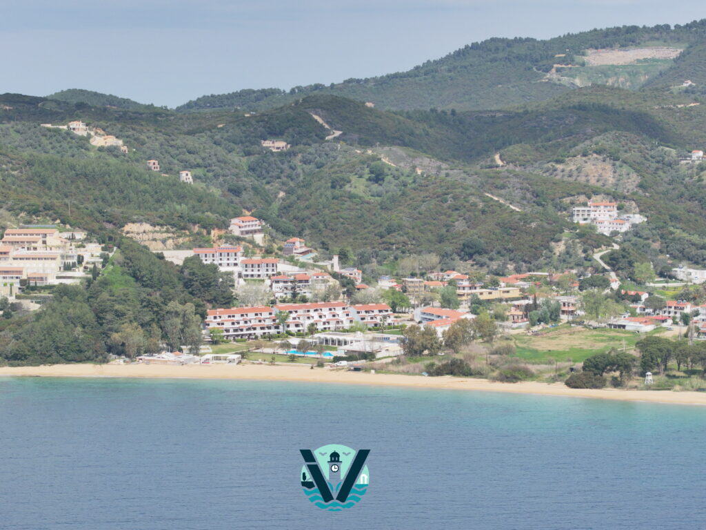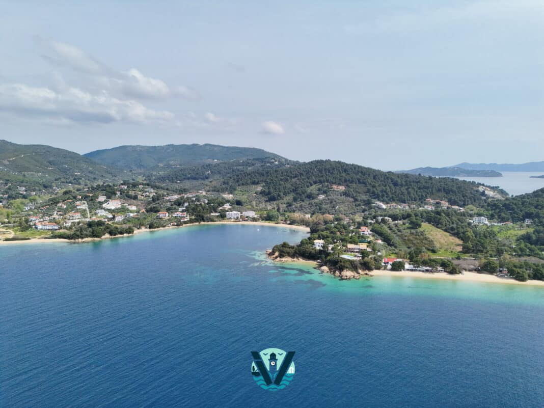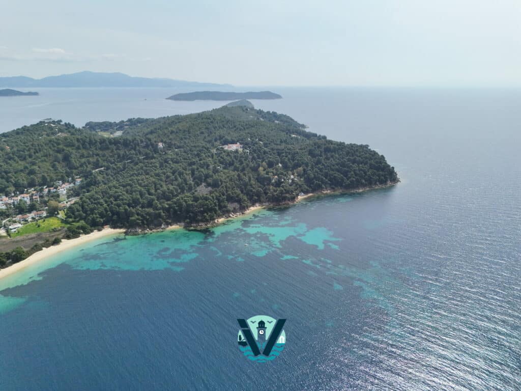 Η ομορφιά του νησιού μας ξεδιπλώνεται αλλιώς όταν την κοιτάς από τον ουρανό… Τα καταγάλανα νερά, τα πεύκα που ακουμπούν στη θάλασσα και τα σπίτια που φωτίζονται από το φως της ημέρας, συνθέτουν ένα τοπίο που δεν χορταίνεις να θαυμάζεις.