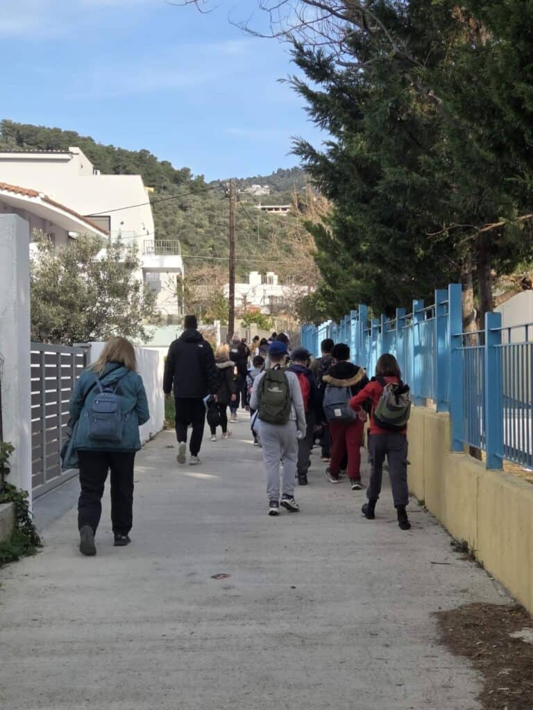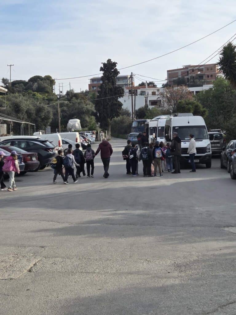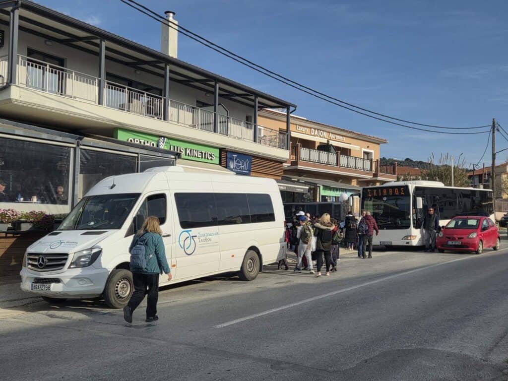 Για την μετακίνηση των μαθητών μας χρησιμοποιήθηκαν τρία λεωφορεία των Συγκοινωνιών Σκιάθου και τρία λεωφορεία της Dolphin of Skiathos!
