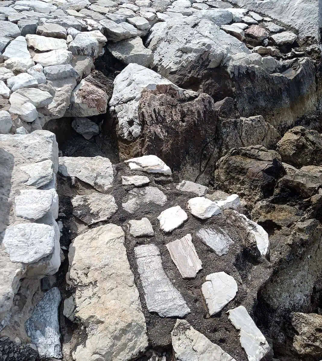 Όπως φαίνεται στο φωτογραφικό υλικό, τμήμα της διαμόρφωσης παρουσιάζει εμφανή φθορά, με τον κίνδυνο να επιδεινωθεί περαιτέρω σε περίπτωση έντονου κυματισμού.