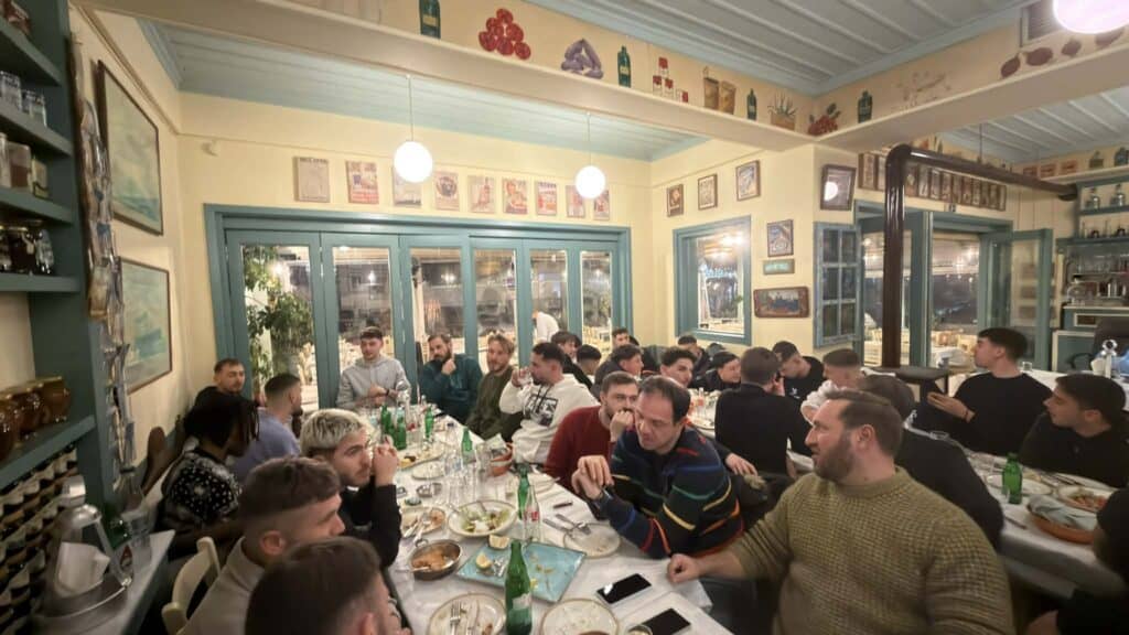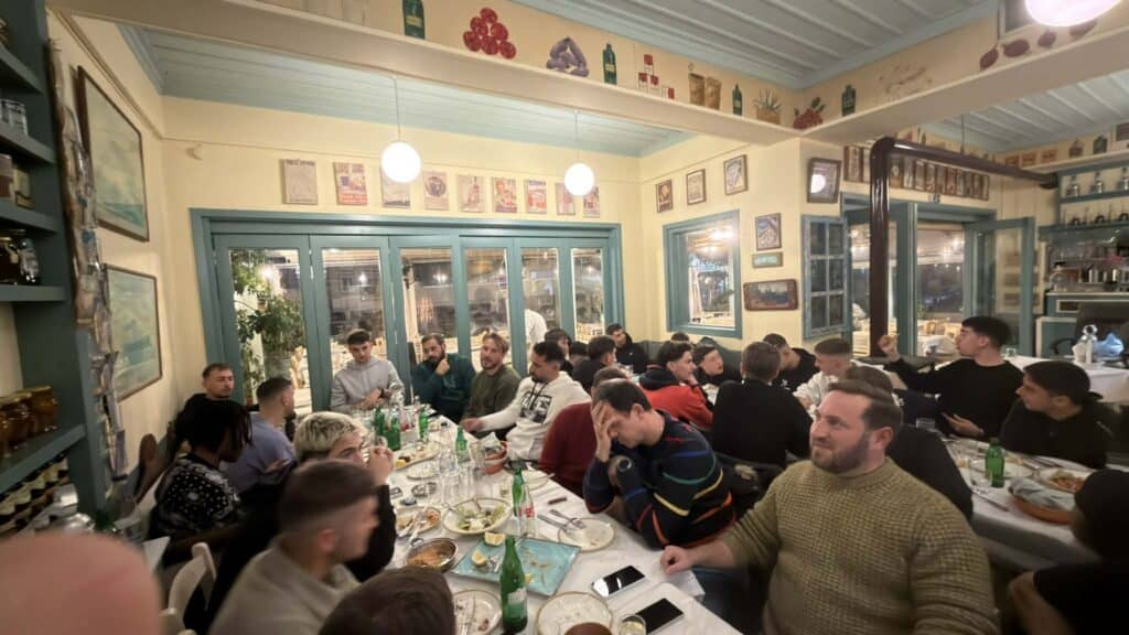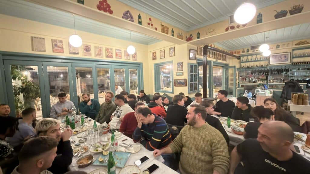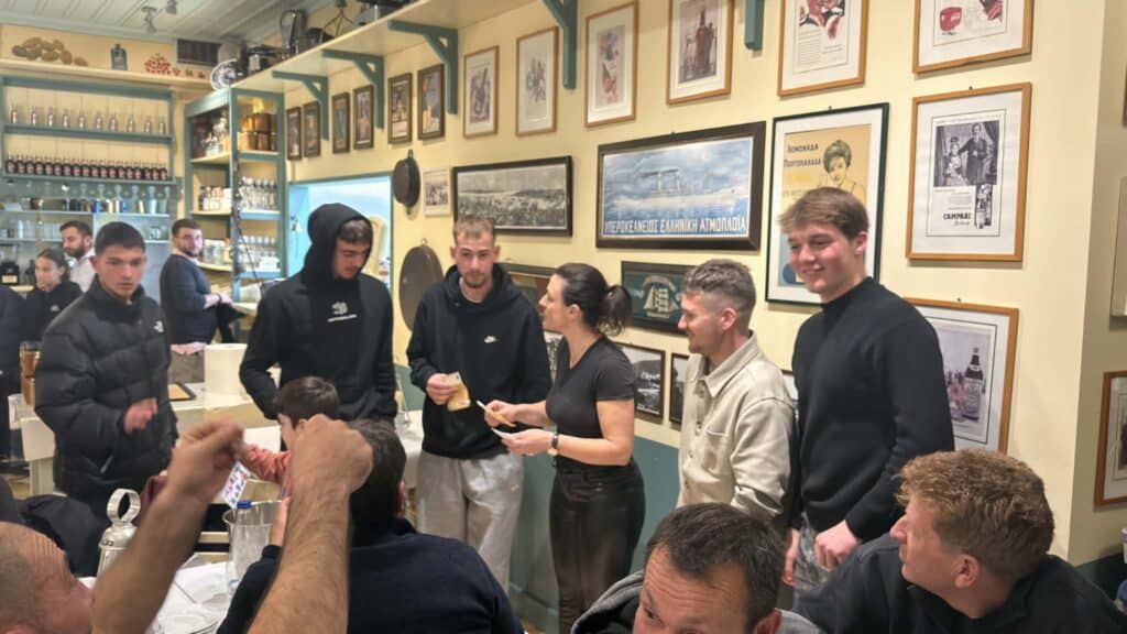 Αθλητές των ομάδων Α & Β καθώς επίσης και μέλη του Δ.Σ. του ομίλου παρουσία του Προέδρου κυρίου Γεώργιου Τσότσου αντάμωσαν και τσουγκρίζοντας τα ποτήρια ευχήθηκαν να παραμένουν οι ομάδες ενωμένες με ομοψυχία.