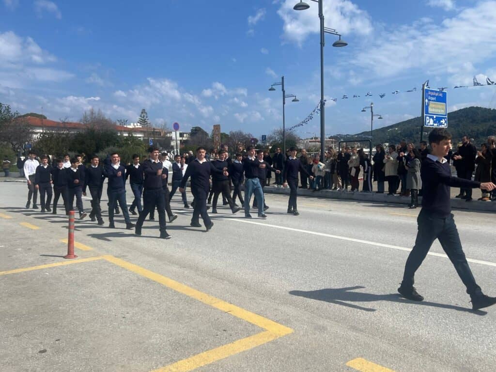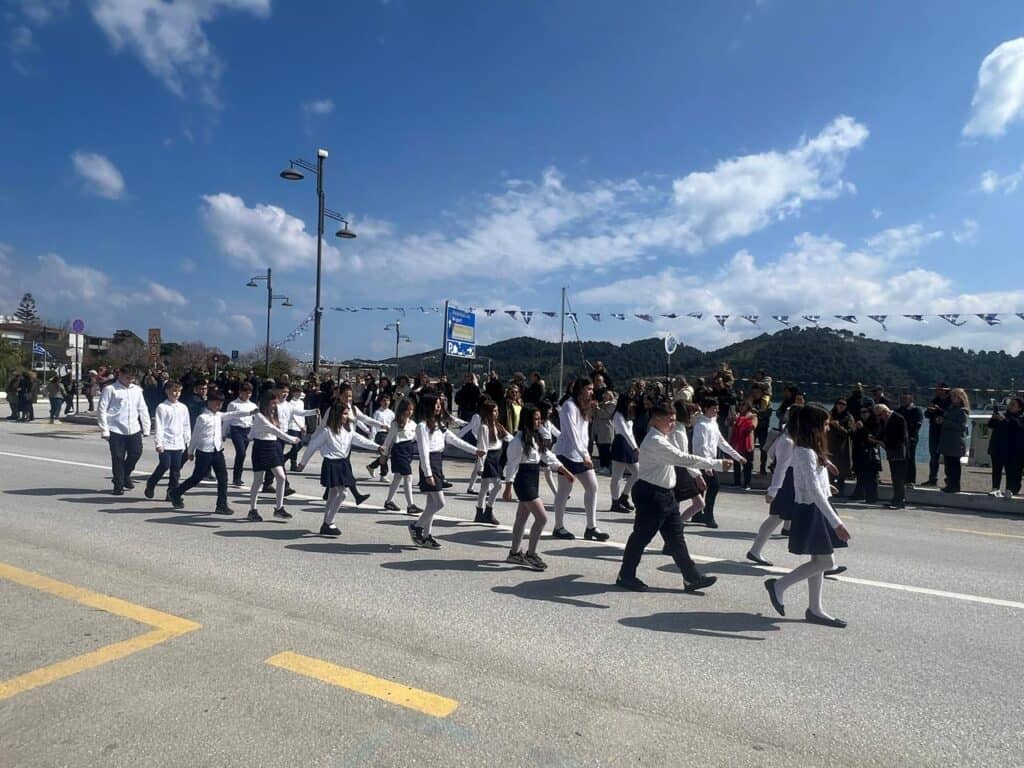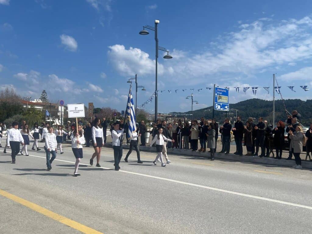 Με ιδιαίτερη επισημότητα και εθνική υπερηφάνεια πραγματοποιήθηκε η μαθητική παρέλαση στη Σκιάθο για τον εορτασμό της 25ης Μαρτίου, τιμώντας την επέτειο της Ελληνικής Επανάστασης.