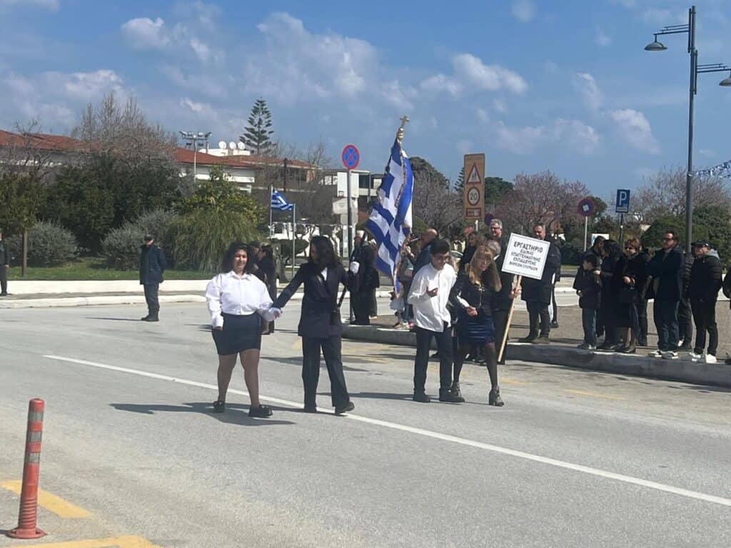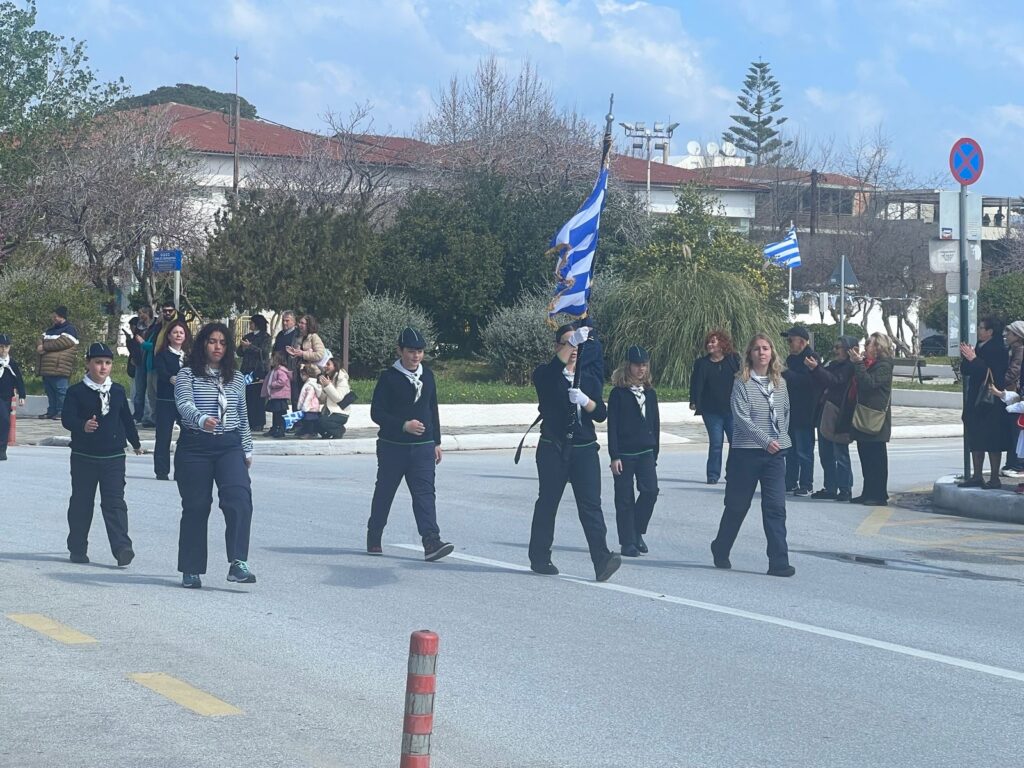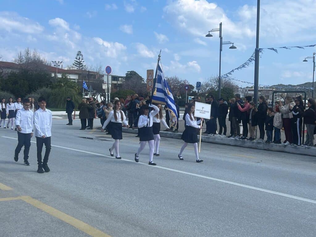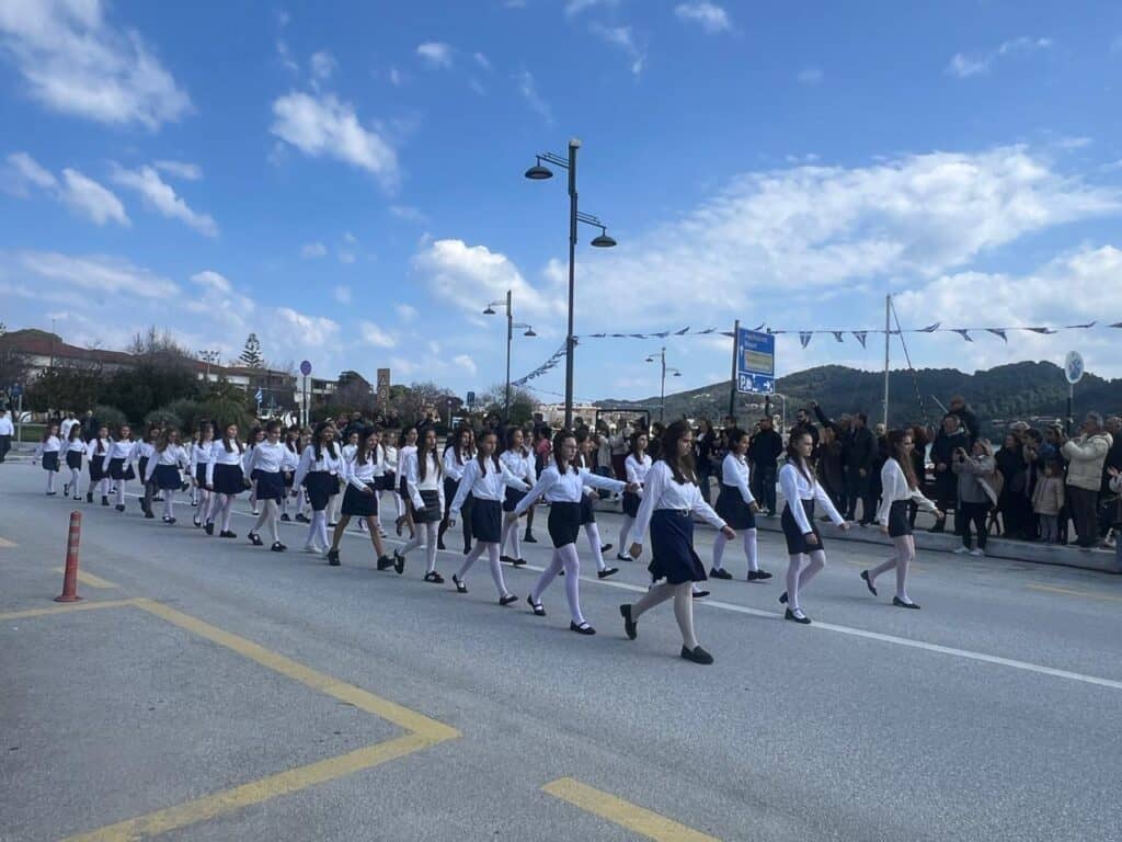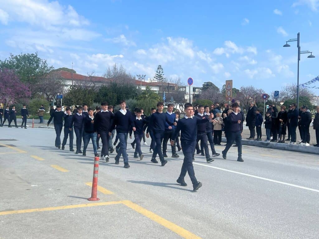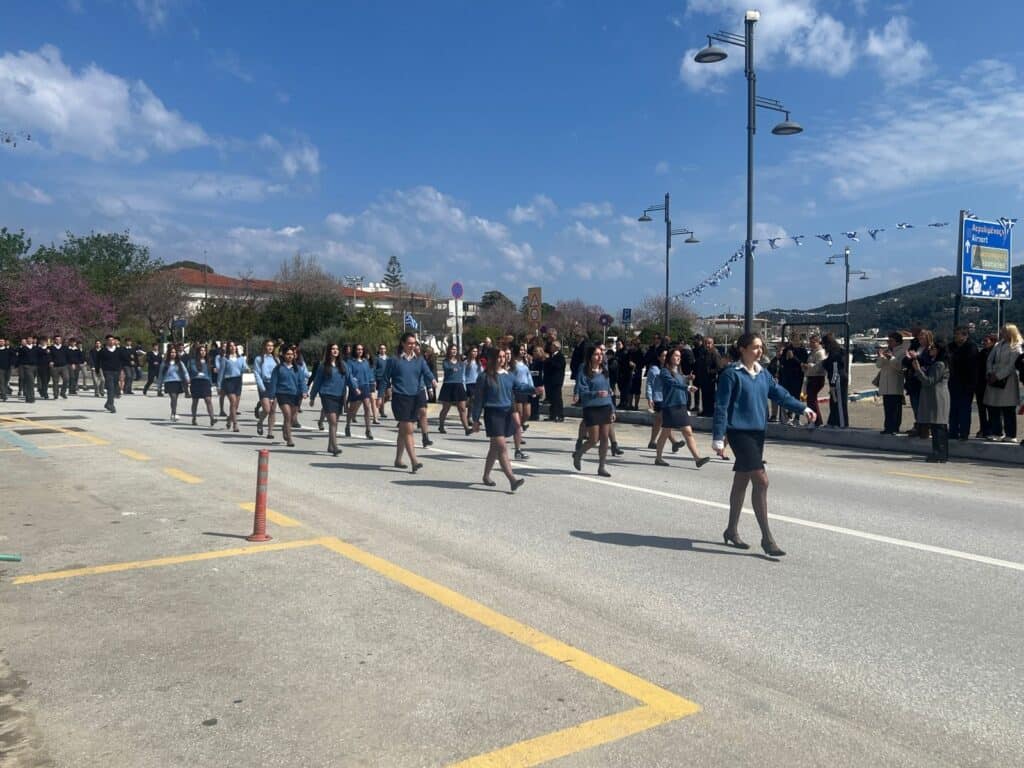 Στην παρέλαση συμμετείχαν μαθητές και μαθήτριες των σχολείων του νησιού, οι οποίοι με άψογη εμφάνιση και πειθαρχία καταχειροκροτήθηκαν από τους παρευρισκόμενους. Δίπλα τους, δυναμικό «παρών» έδωσαν οι Οδηγοί, μεταφέροντας μήνυμα αισιοδοξίας, εθελοντισμού και ενεργού συμμετοχής στη σύγχρονη κοινωνία.