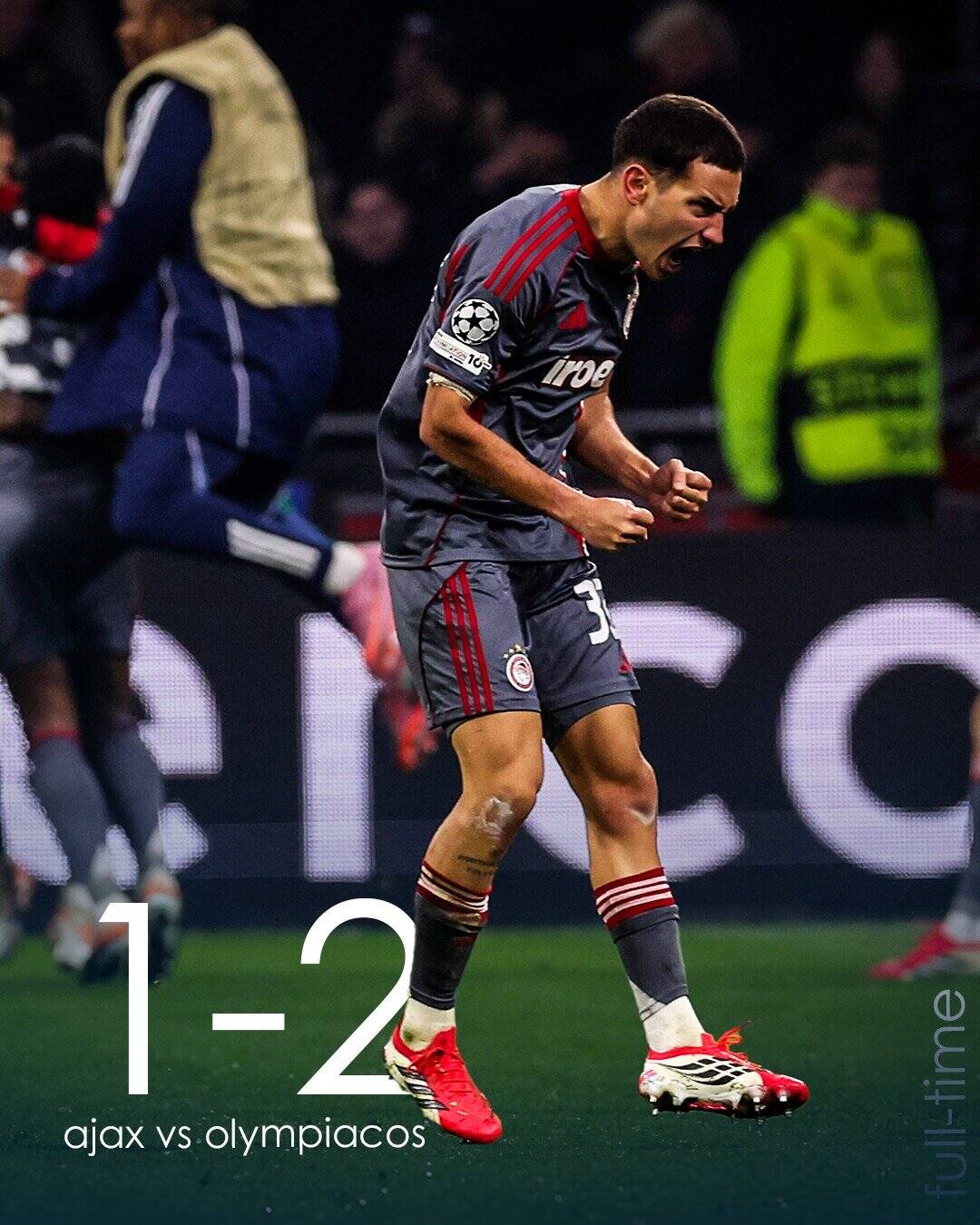 Τελικό σκορ: Άγιαξ 1 — Ολυμπιακός 2