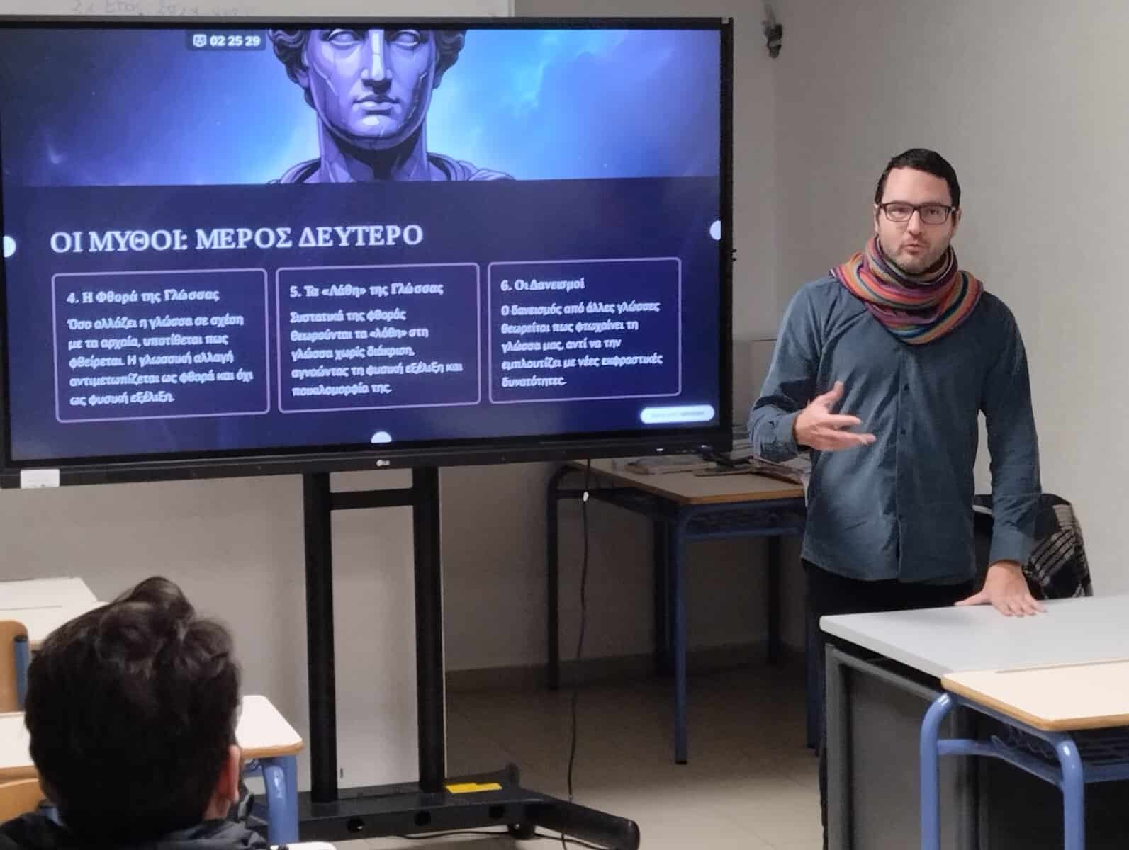 Τη Δευτέρα 9 Φεβρουαρίου, στο Εσπερινό ΕΠΑΛ Σκιάθου, πραγματοποιήθηκε εκπαιδευτική παρουσίαση με αφορμή την Παγκόσμια Ημέρα Ελληνικής Γλώσσας, αφιερωμένη στους «10 μύθους για την ελληνική γλώσσα», οι οποίοι εξακολουθούν –σε μικρό ή μεγαλύτερο βαθμό– να αναπαράγονται έως και σήμερα.