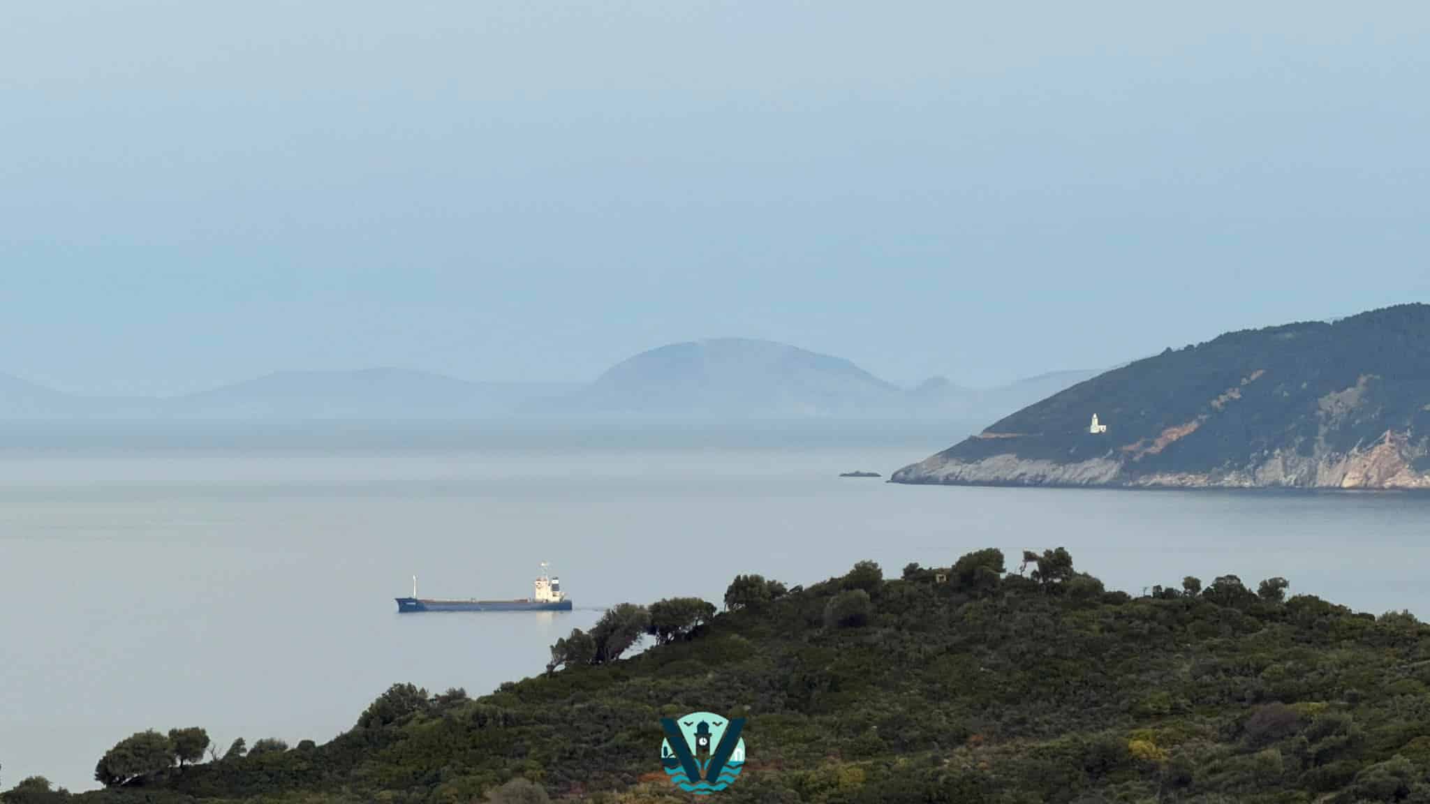 Η σημερινή εικόνα από το νησί χαρίζει μια γαλήνια, σχεδόν ατμοσφαιρική ματιά στο πέλαγος, με το πλοίο να διασχίζει ήρεμα τα νερά …μέσα σε ελαφριά χειμωνιάτικη θαμπάδα.