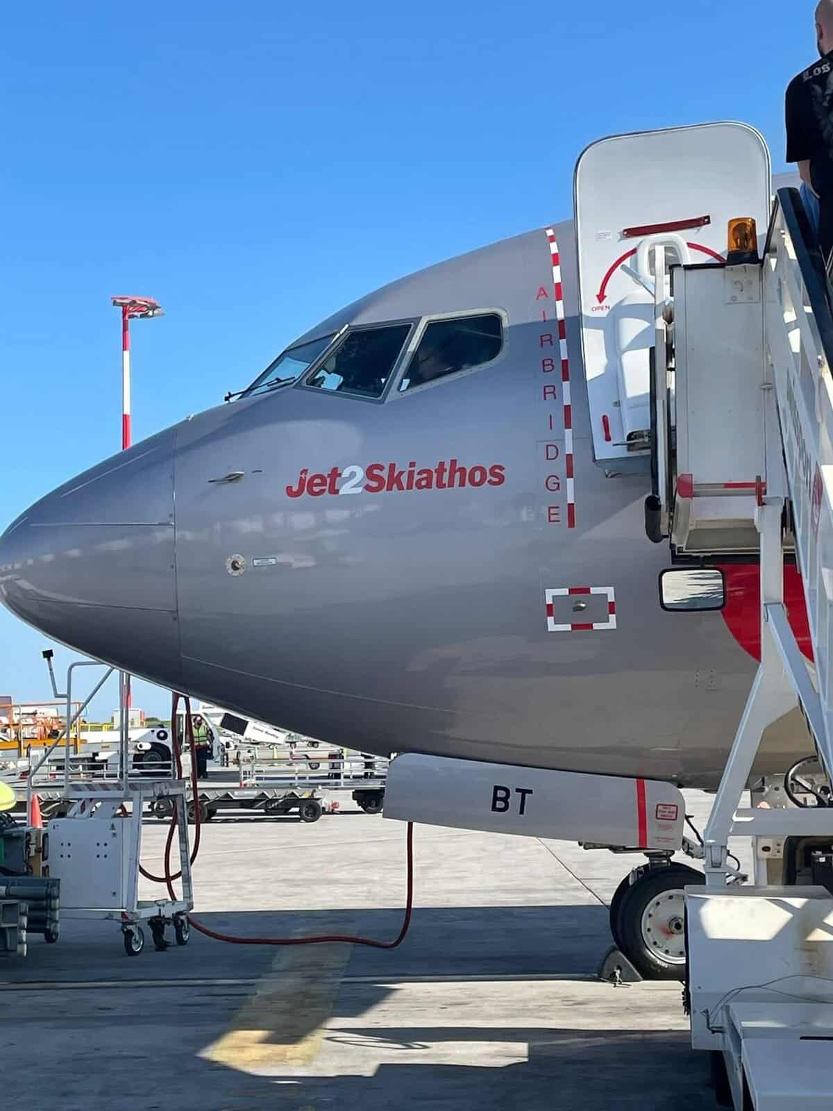 Μια όμορφη εικόνα από το Αεροδρόμιο Θεσσαλονίκης «Μακεδονία», όπου αεροσκάφος της βρετανικής αεροπορικής εταιρείας Jet2 φέρει την ιδιαίτερη ονομασία “Jet2Skiathos”, ταξιδεύοντας το όνομα της Σκιάθου στους αιθέρες.