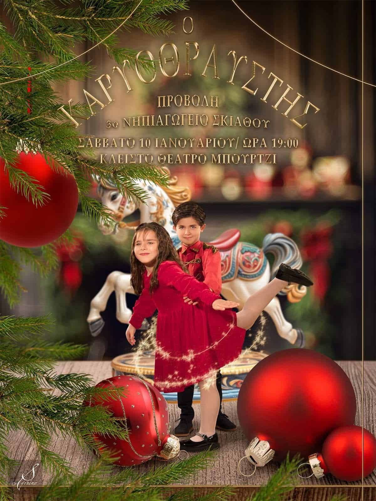 Μια ξεχωριστή χριστουγεννιάτικη παράσταση με τίτλο «Ο Καρυοθραύστης» παρουσιάζει το 3ο Νηπιαγωγείο Σκιάθου, το Σάββατο 10 Ιανουαρίου και ώρα 19:00, στο Κλειστό Θέατρο Μπούρτζι.Εμπνευσμένη από το κλασικό παραμύθι, η παράσταση ζωντανεύει επί σκηνής μέσα από την παιδική αθωότητα, τη μουσική, την κίνηση και την εορταστική ατμόσφαιρα, χαρίζοντας στο κοινό εικόνες γεμάτες φαντασία και συγκίνηση. Οι μικροί πρωταγωνιστές, με τη βοήθεια των εκπαιδευτικών τους, παρουσιάζουν μια δημιουργική και καλαίσθητη προσέγγιση του αγαπημένου έργου.Η εκδήλωση αποτελεί μια ακόμη όμορφη πολιτιστική πρωτοβουλία του σχολείου, αναδεικνύοντας τη σημασία της τέχνης και της έκφρασης ήδη από την προσχολική ηλικία, ενώ παράλληλα φέρνει κοντά οικογένειες και την τοπική κοινωνία σε μια γιορτινή βραδιά.Η είσοδος είναι ελεύθερη και το κοινό καλείται να στηρίξει με την παρουσία του αυτή τη χαρούμενη προσπάθεια, που υπόσχεται να σκορπίσει χαμόγελα σε μικρούς και μεγάλους.