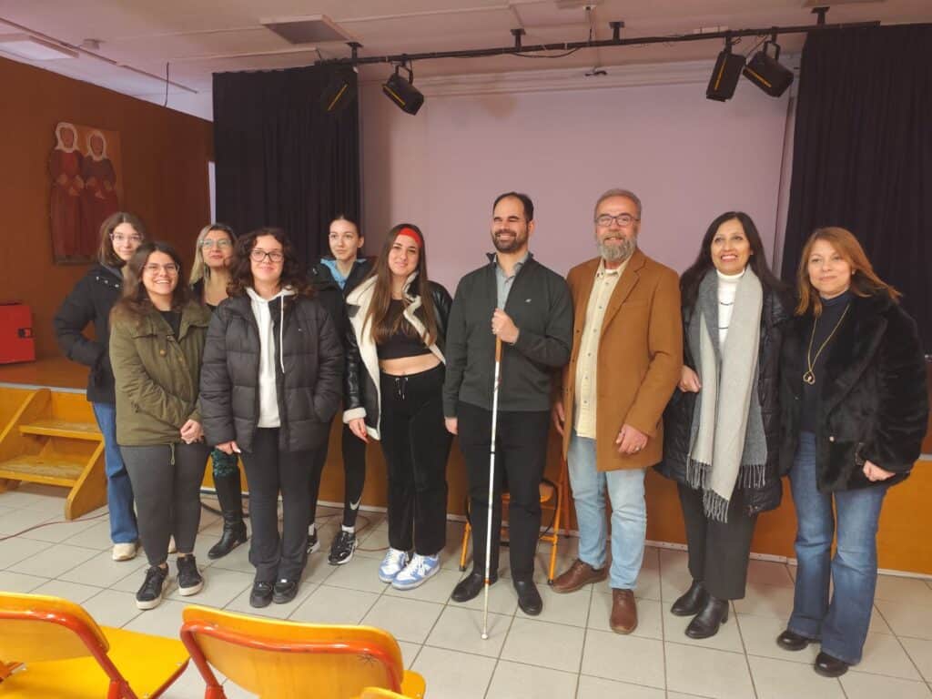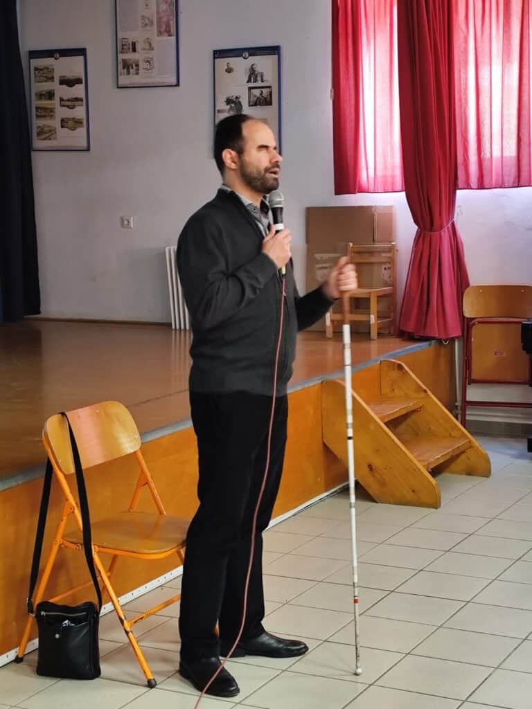 Ο κ. Αυγουλάς, εκ γενετής τυφλός, μοιράστηκε με τους μαθητές την προσωπική του ιστορία, μιλώντας με ειλικρίνεια για την καθημερινότητά του, τις προκλήσεις που αντιμετωπίζει και τον τρόπο με τον οποίο τις υπερβαίνει. Με τον άμεσο λόγο του, το χιούμορ και την αισιοδοξία του, κέρδισε το ενδιαφέρον των μαθητών και τους ενέπνευσε να βλέπουν τη ζωή με περισσότερη θετικότητα και πίστη στις δυνατότητές τους, τονίζοντας πως με συνεχή προσπάθεια μπορούμε να επιτύχουμε κάθε στόχο.