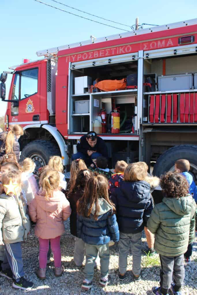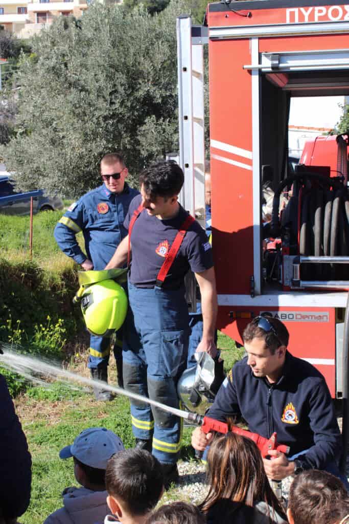 Οι μικροί μας μαθητές γνώρισαν από κοντά το σπουδαίο έργο των πυροσβεστών, είδαν τα πυροσβεστικά οχήματα και τον εξοπλισμό, που χρησιμοποιείται σε δύσκολες και απαιτητικές αποστολές, χρησιμοποίησαν τις μεγάλες μάνικες των οχημάτων, ενώ άκουσαν με μεγάλο ενδιαφέρον χρήσιμες πληροφορίες για την πρόληψη και την ασφάλεια. Με τρόπο απλό και κατανοητό, οι πυροσβέστες μοιράστηκαν πολύτιμες γνώσεις με τα παιδιά, καλλιεργώντας το αίσθημα της ευθύνης, της συνεργασίας και της προστασίας του συνανθρώπου.