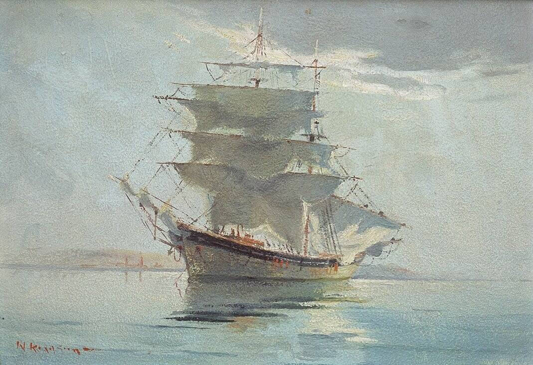 (Ζωγραφική από ΜΟΝΙΜΕΣ ΣΥΛΛΟΓΕΣ / PERMANENT EXHIBITIONS Νικόλαος Καλογερόπουλος, Ιστιοφόρο. Ελαιογραφία 45×55 εκ. , ΝΑΥΤΙΚΟ ΜΟΥΣΕΙΟ ΤΗΣ ΕΛΛΑΔΟΣ)