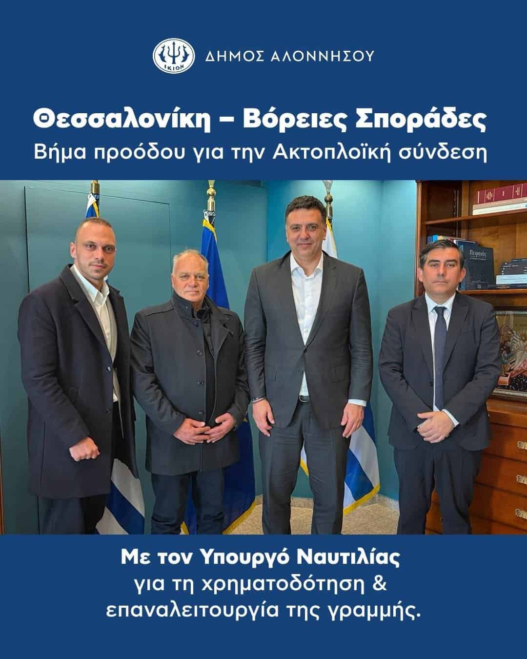 «Η σύνδεση της Θεσσαλονίκης με τις Βόρειες Σποράδες αποτελεί ένα διαχρονικό αίτημα των νησιών μας. Με συνεργασία και συντονισμένες πρωτοβουλίες προχωρούμε σταθερά, ώστε να δημιουργηθούν οι προϋποθέσεις για μια γραμμή που θα ενισχύσει την προσβασιμότητα, την οικονομία και τη συνολική αναπτυξιακή προοπτική της Αλοννήσου.»
