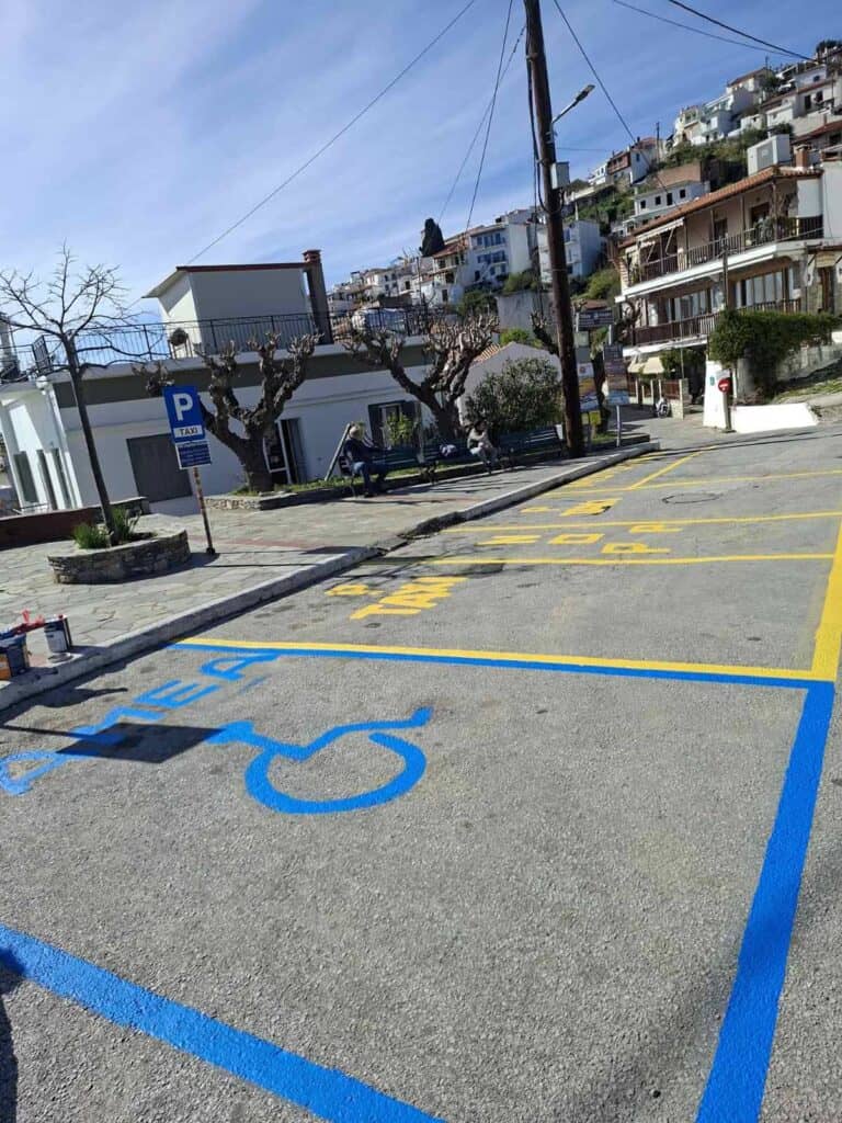 Ιδιαίτερη έμφαση δίνεται και στην κοινωνική μέριμνα, με τη δημιουργία νέων θέσεων στάθμευσης για άτομα με αναπηρία (ΑμεΑ). Η πρωτοβουλία αυτή υλοποιείται σε συνεργασία με το Δημοτικό Λιμενικό Ταμείο Σκοπέλου, αναδεικνύοντας τη σημασία της ισότιμης πρόσβασης σε δημόσιους χώρους και υποδομές.