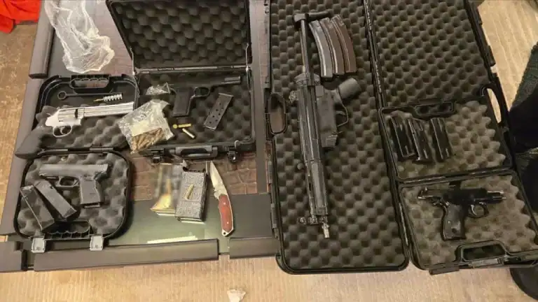 -12- πιστόλια, 2 περίστροφα, 4 τυφέκια και καραμπίνες, 22 γεμιστήρες, 1.642 φυσίγγιακαι χειροβομβίδα κρότου λάμψης,